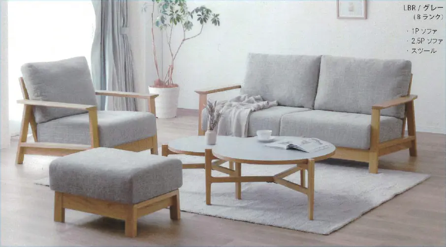 座面の奥行きたっぷり。広いお部屋にはカウチセット、広くないお部屋には3人掛け、スツール