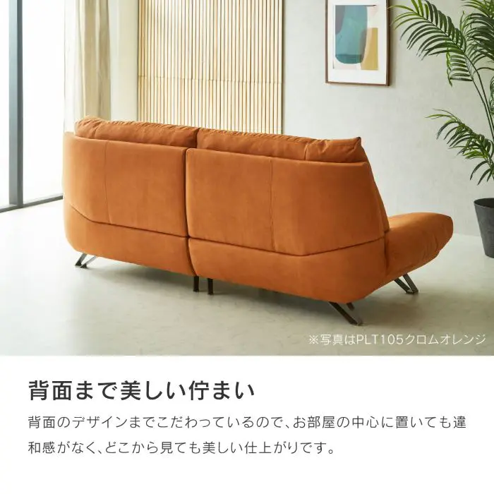 コンパクトサイズの上質な皮革ソファ。ラインの形状が美しい。体全体を包み込む極上の座り心地。国産。